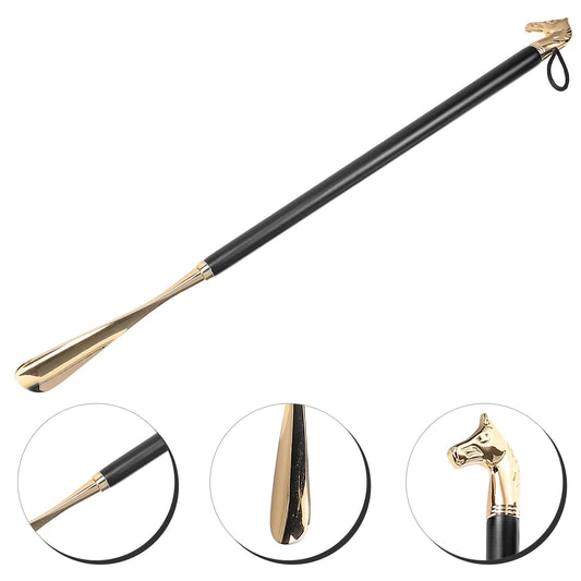 Metall-Schuhlöffel mit Pferdekopf, 56 cm lang, schwarz – Praktische Hilfe beim Schuhe Anziehen, hochwertig & langlebig (keine Versandkosten)